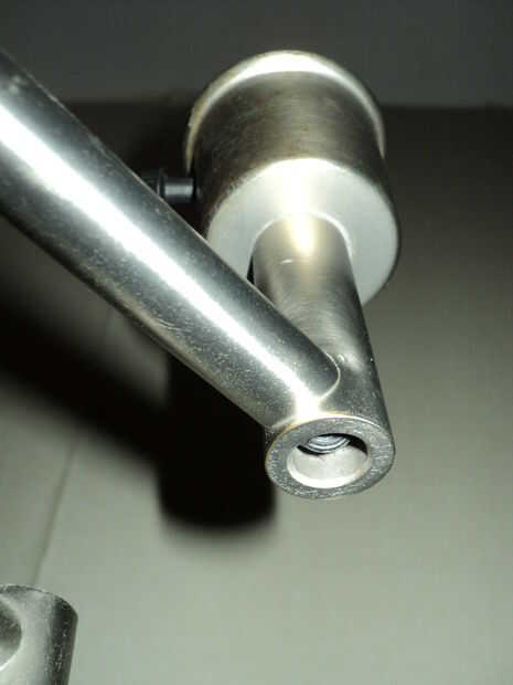 A veces con la materia producido en masa, fabricantes se utilice accesorios patentados serán solo soldar o cubrir todo en cola en una gran no-usuario--manipulables por el blob. Hizo estallar fuera de la tapa de extremo en el extremo del basculante para ver cómo se une la toma. Sólo vi el cable enrutado allí y pensé que no pegarse un destornillador o allen llave allí para separar la toma. Traté de tirar en todas las partes para ver lo que vendría aparte. Luego jugó alrededor con girar las piezas para ver lo que puede haber enhebrado para encajar todo junto.