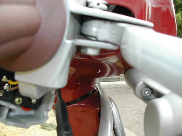 Atornillar el sensor de luz, el acelerador de nuevo, gancho ahora el cable de nuevo en el agarre del tornillo. Deslice las dos mitades del Monte juntos y atornillarlas juntas.