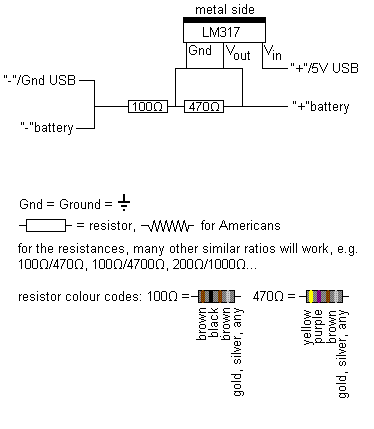 Medir el cable USB para encontrar el suelo / "-" y el positivo.