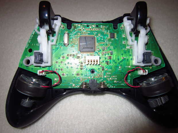 Después de quitar los tornillos, simplemente, pero con cuidado, tire de la parte posterior del controlador y viola! Se quita la parte de atrás y había sido expuesto el chip!