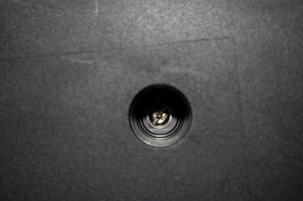 2. una vez que tenga la unidad boca abajo; hay 18 tornillos de Torx #8 a lo largo del perímetro de la carcasa trasera. Retire todos los tornillos. Una vez que tienes estas eliminada todos van al panel de la entrada-salida y quitar los dos tornillos ubicados en el centro del panel. También hay uno en los puertos de E/S del panel de lado.