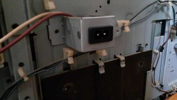 4. en este momento quitar el puerto de alimentación del centro de la montura de la unidad y había desconectada de la placa de alto voltaje. La toma tiene que "exprimir" trabas para liberarla.