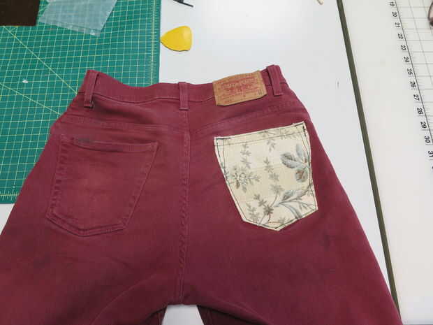 Vuelva a colocar el bolsillo trasero en pantalones vaqueros