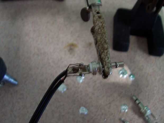 Grande tierra - los otros dos están bien apretados y canales a la izquierda. Prefiero pasando los cables por el interior y el exterior de la soldadura. Sujete al conector apuntando lejos de usted, con el conector de tierra abajo. El pequeño pasador a la derecha es derecha, queda a la izquierda. La soldadura de estas en el lugar.
