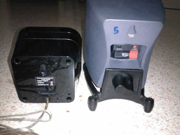 Y allí vas, tu HTiB ahora usa mejor cables o satélites (Pic13). Disfrutar del sonido! Reemplacé mi satélites satélites de Cambridge SoundWorks (Pic14-15). Tiene mayor potencia y la impedancia por lo que ahora es poca potencia, pero lo que una gran diferencia comparado con los satélites originales de Philips.