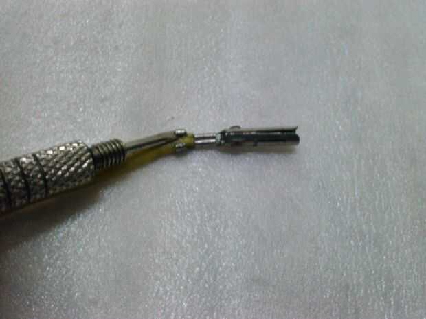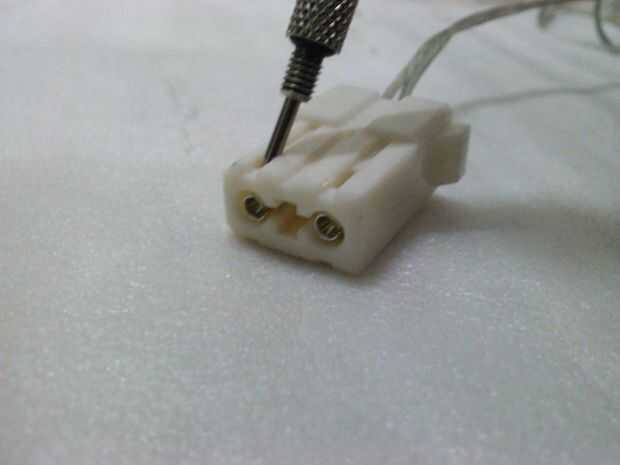 Proceder a verificar de nuevo la polaridad antes de colocar las clavijas en el conector de plástico. Después de comprobar, tendrá que desbloquear las lengüetas de fijación en el lado de las clavijas con pequeño flathead destornillador (Pic11). Empuje suavemente el nuevo pins hembra en el conector de plástico hasta que cerraduras y asegurado (Pic12).