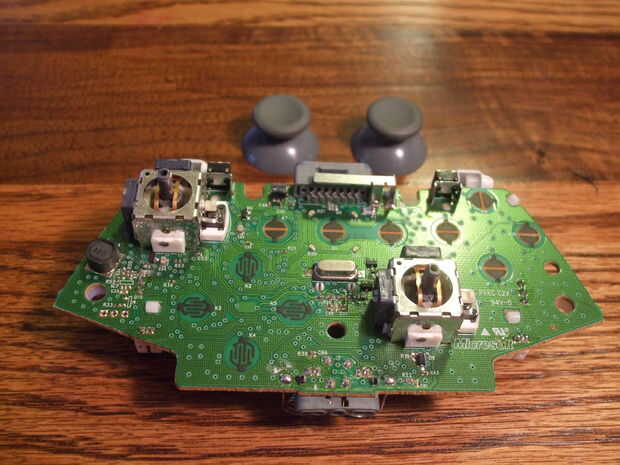 6. después de retirar la placa de circuito, localice y retire los thumbsticks de la
