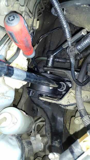 La forma más fácil de instalar la nueva montura es volver a poner el perno largo en entonces instale los 3 pequeños tornillos. Usé un destornillador para alinear los agujeros del chasis después fue atornillar el perno largo.