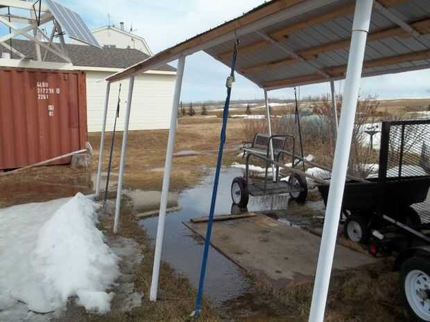 para hacer un techo que le arrojan agua una cuerda fue encadenado entre dos árboles y luego suelta para arriba.  Fácil y barata manera de hacer más de un techo de armazón.Gracias por ver.