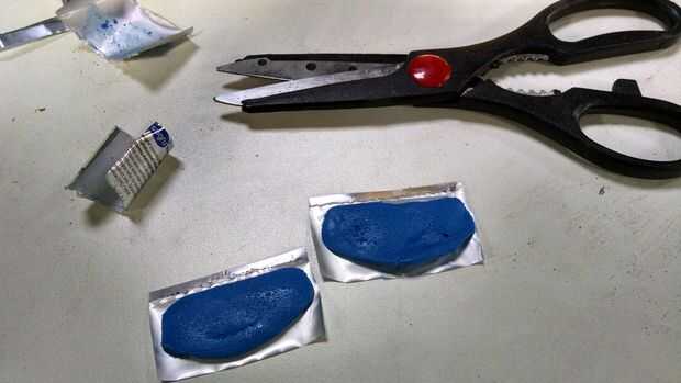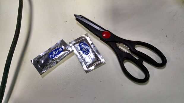 Para la reparación, he utilizado dos paquetes de Sugru, asegúrese de que usted corte tres lados del paquete como se indica.