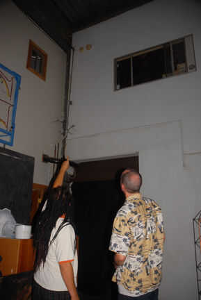 El pitido escuchamos cada 30 segundos resultó para ser un detector de humo que batería necesita ser cambiado. En la mayoría de las familias, esto no sería más difícil que llegar a arriba con la ayuda de una pequeña escalera, retirar la unidad y reemplazar la batería. Sin embargo nuestros techos son de 30 pies de alto, y no tenemos escalera esa altura.