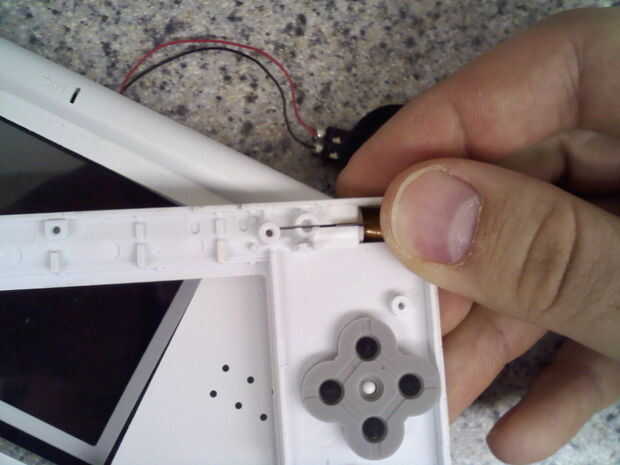 Para desmontar la bisagra, el piloto tendrá que desenroscar. Hay dos tornillos que mantienen esta pieza en su lugar. Una vez retirada la luz de indicador, asegúrese de que sacar la pieza translúcida en su interior. Kit de reemplazo de mi no lo hice con esto y no me di cuenta que me estaba perdiendo hasta que terminé de congregarnos el DS todo nuevo...