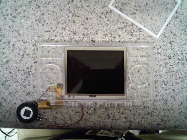 Después de que los cables están todos en el lugar y se fija la parte posterior, el A, B, X, Y, botones Start, Select y D-pad pueden ser colocados en la carcasa y la placa de circuito principal puede ser enroscada.