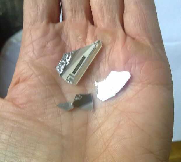 La foto es de algunos de los fragmentos de vidrio de la pantalla muerto, éstos eran los pedacitos más grandes. Son afiladísimo.