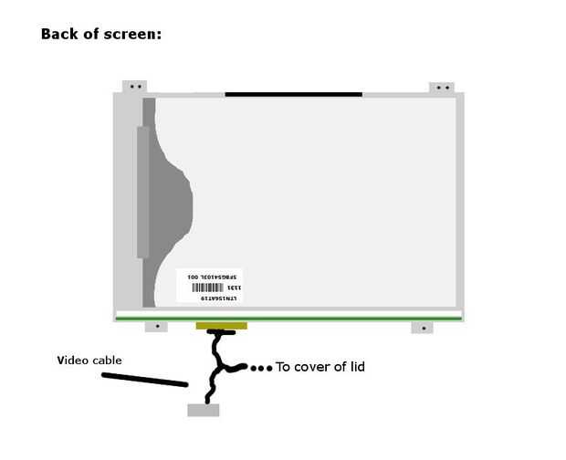 Si usted voltea la pantalla (ver imagen cuarto) puede ver donde conecta el cable de video al chip dentro de la tapa, y se puede ver el número de parte de la propia pantalla.