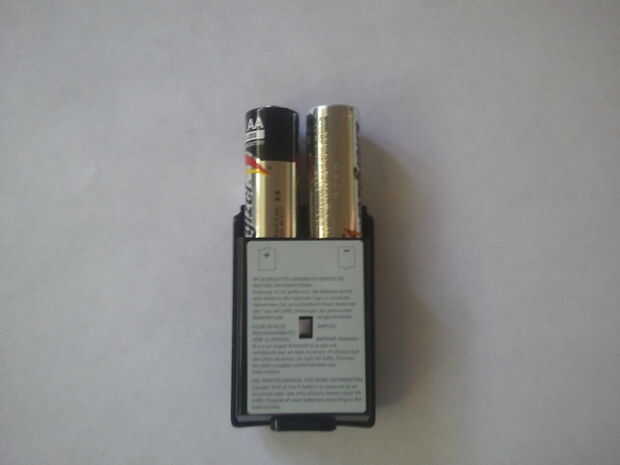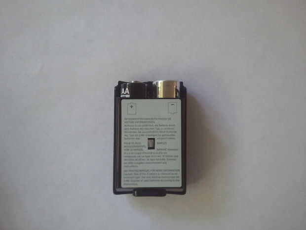 Tomar dos nuevas pilas AA y colocarlos en el soporte de la batería, asegúrese de prestar atención a la pegatina de la polaridad.  Empuje en lo pueden.