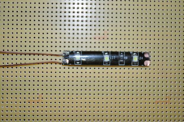 h. Repita paso 2d y 2e sin embargo esta vez soldar el cable a los cables de la primera tira de luz y cortar el exceso con unas tijeras (me gusta usar un cortador de uñas para este paso que corta el hilo al ras con los conductores) reutilizar el exceso que sólo cortó, (volver a la lata si es necesario)