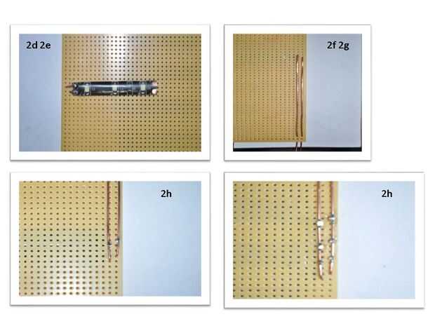 d. colocar los cables de montaje que acaba de hacer en el borde adyacente de la perfboard. Alterne los cables negativos (-) va en la columna A y positivo (+) va en la columna B