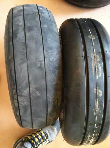 Estos neumáticos están desgastados (aviso desgaste raro) y listo para sustituirse por unos como el de la derecha.
