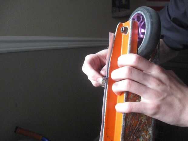 Ahora que la cinta está en tu mazo de cartas, usted podría notar la proyección de la cinta del apretón (ver las fotos). Es sencillo deshacerse de los que tienen bordes limpios. Primero ejecutar el Allen Key hacia abajo el borde de la cubierta varias veces para hacer un pliegue (cuadro 1). A continuación, ejecute el cuchillo a lo largo de la longitud, corte el pliegue (Foto 2). Easy peasy.