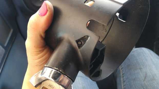 Esta parte redonda debe deslizarse fácilmente sobre su atalaje de cableado. Si tuvo que retirar el interruptor de encendido, no se verá como en la foto. Si el collar se salió con el interruptor a, bienvenida al club, retire el interruptor de encendido ahora (ver paso anterior).