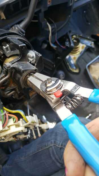 Hay un anillo de retención manteniendo el resto de la Asamblea de deslizamiento hacia delante de la columna. Encontrar el ángulo adecuado consejos para tus pinzas y fíjela con la llave proporcionada en micro. Extienda suavemente el anillo y la diapositiva de la columna.