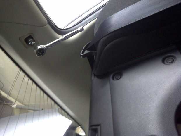 los asientos traseros en la diapositiva de Toyota Prius V 2012, reclinar, doble piso y, si estás dispuesto a tomar una toma en su coche, se quitan fácilmente. Sacar uno o dos puestos realmente aumenta el espacio de carga. Corté una de las tapas de