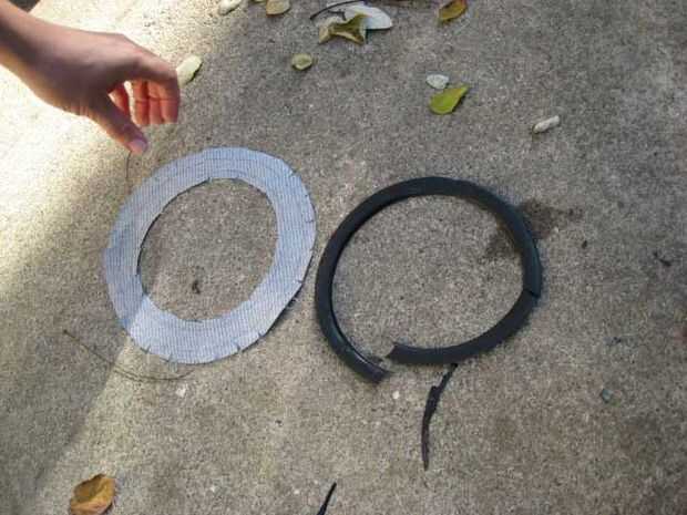 Pero si es tan barato como estoy o tener poco dinero para gastar en altavoces, este servicio es para usted. Así permite comenzar. La víctima de este trabajo es un buen JBL 10" subwoofer. En primer lugar, retire el altavoz del gabinete. En segundo lugar, suavemente Retire el viejo rodear el cono. Cerca del 90% de los altavoces que considero usar espuma. Este material normalmente se derrumba lejos. Este altavoz es un poco más agradable y utiliza goma. Este altavoz como muchos otros tiene más gruesos pedazos de espuma pegadas en la parte superior del borde de la envolvente. Por lo general salen en varios pedazos. Use un cuchillo de algún tipo para levantarlas suavemente. Entonces tire el resto de la envolvente.