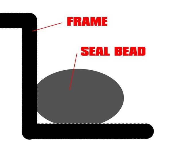 Aplique una tira delgada de sello del parabrisas como se muestra en la ilustración, "sobre todo" en la parte inferior del borde del marco, pero tocando un poco el lado. Encontré el parabrisas estándar kit, la clase que es una pre-en "tira," demasiado espesa así que rodé entre mis manos hasta no más de 1/4" de diámetro del sello. Presionar cuidadosamente en el borde de la por lo que no interfiere con la instalación de la ventana, se aplana y sellar perfectamente y no hará demasiado difícil de quitar en la parte superior siguiente Instale (tops generalmente 10-15 años, si se cuida correctamente.)