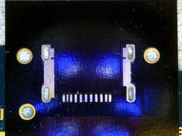 Con una fuente de aire caliente (u otros medios como IR), con cuidado retire el reemplazo que requiere conector. Asegúrese de que enmascarar las áreas periféricas con el fin de evitar que el calor de dañar componentes vecinos. Utilice unas pinzas para quitar. Soldador, fundente y la soldadura trenza para quitar remanente de soldadura en todas las almohadillas.