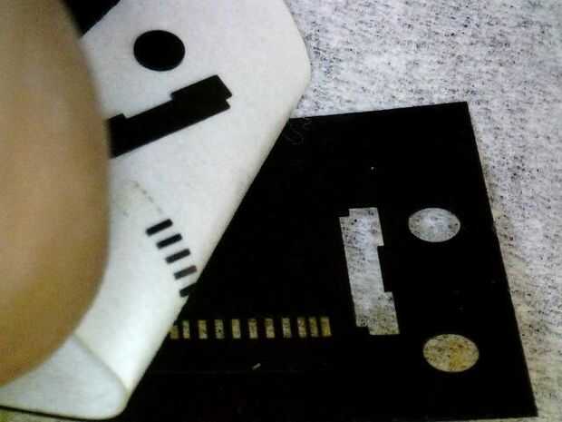 Paso 2: Pelar el forro de liberación de la plantilla de la USB. Alinear y colocar.
