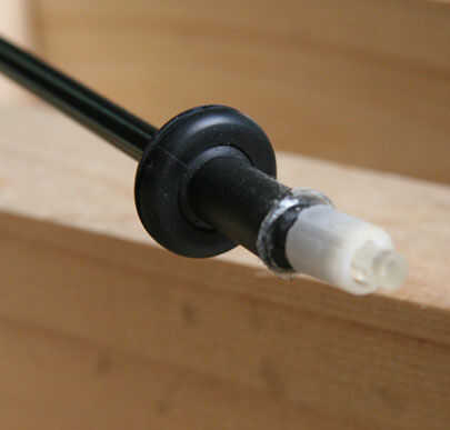 El pequeño grommit debe quedar ceñido alrededor de la hoguera. Para mi situación, el manguito de tamaño adecuado no cupo sobre el LED en el extremo de la estaca, usé el cuchillo Xacto para abrir el ojal.