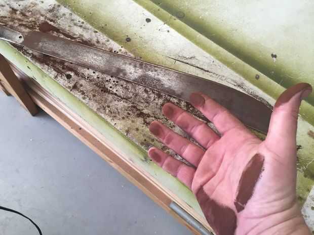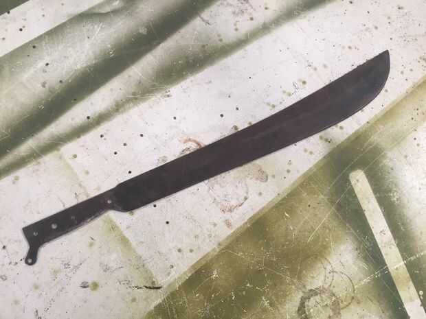 Me usar un machete Bill enganchado en el jardín de casa para diversas actividades como poda de árboles, cortar ramas no deseadas, descascarar coco, partida de madera y todo. Lamentablemente tiene roto el mango de madera del machete y se convirtió en