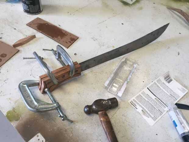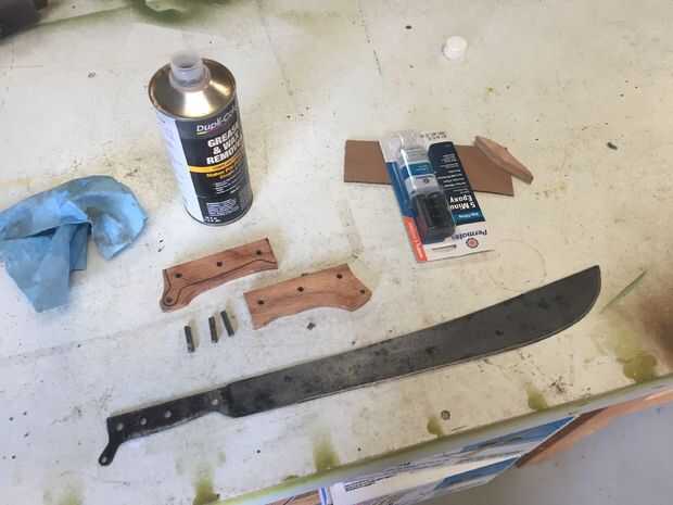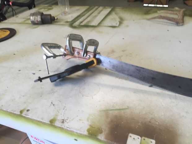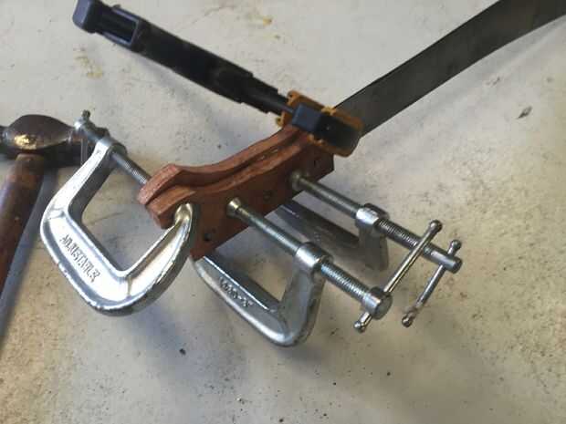 Aplicar liberalmente epoxy para ambos el mango. Montar el mango y asegúrese que los pernos son empujados a través y descarga lado ganado. Les Fije la abrazaderas en c con la mano.
