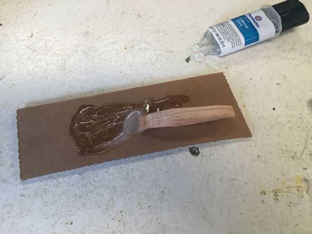 Mientras que usa guantes de latex uso alguna cartulina de mezclar el epoxi en. No tome el tubo de todo pero más mezclar lo que se necesita.