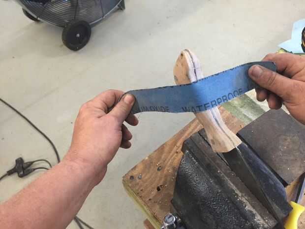 Me gusta el uso de una lijadora de banda para eliminar el área más grande de madera. Lo mismo puede hacerse con limas manuales. Al llegar cerca de la forma que quieres comenzar a utilizar el papel de lija de 80 grano y luego paso a la lija más fina, grano 120 o 220, hasta el final. Cuando es suave y a la forma que te gusta, hay muchos colores diferentes de acabados que se pueden aplicar.