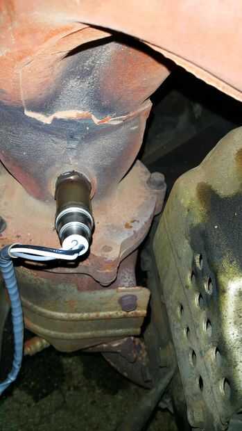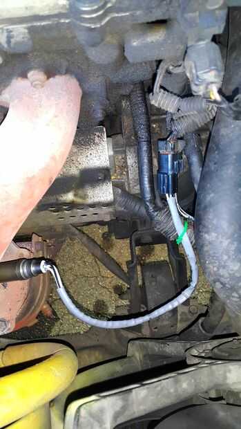 El conector del sensor de oxígeno fue previamente roto. Era confuso qué orientación para tapar el nuevo sensor en el arnés del motor. En el sensor hay 2 cables blancos para el elemento calentador. En el mazo del motor hay 2 cables naranja que he probado para dar 12 voltios al calentador. Ahora sabía qué orientación a enchufe el conector del sensor.