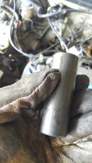 Usando una toma profunda de 19mm quité el sensor del oem. Refrigeración por supuesto vino hacia fuera. Rápidamente atornillado en uno nuevo. No hay necesidad de aire de refrigeración sangrado en este trabajo.