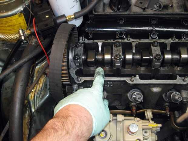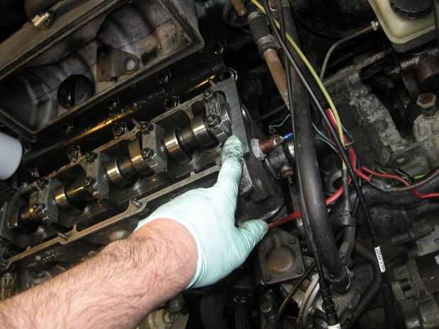 Con la cubierta de la culata - girar el árbol de levas a TDC.  Ambos lóbulos sobre la primera válvula queden arriba y una herramienta dentada plana encaja en una ranura en el otro extremo.