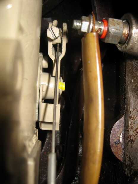 Gire la perilla para que se saca sólo un poco.  Empuje la palanca de arranque en frío hasta el lado del pasajero.  Conectar el cable.
