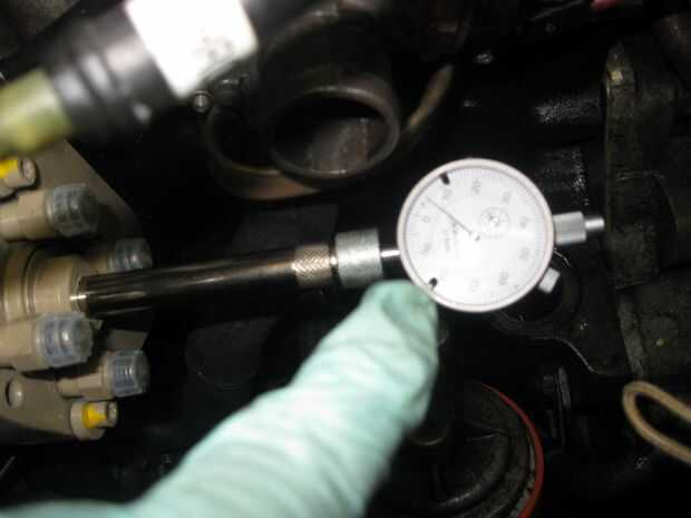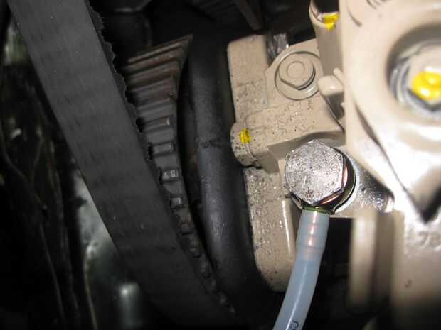 -Afloje los pernos del soporte de bomba de inyección y gire la bomba entera tal que la esfera está en el valor de calibración.