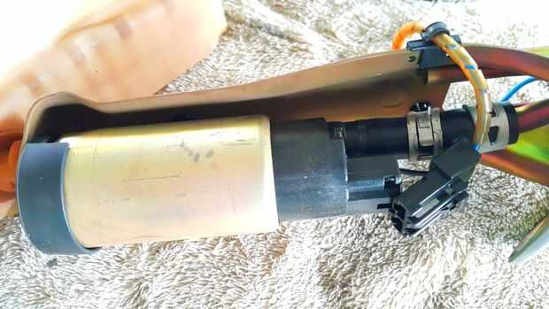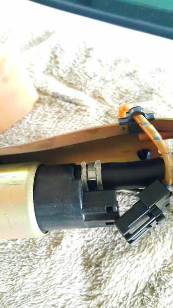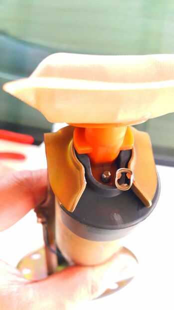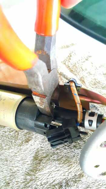 Sacar las pinzas conector y manguera eléctricas procedí a quitar el filtro. La abrazadera de resorte pequeño tiene que venir primero. Usé un destornillador plano para hacer eso. A continuación salió de la coladera de plástico y la bomba apalanca hacia fuera.
