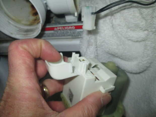 4. este motor tenía una cubierta de plástico sobre el conector de cables. Espetó abierto y desconectada del conector. El conector puede tener un clip que debe ser liberada antes de se puede sacar.