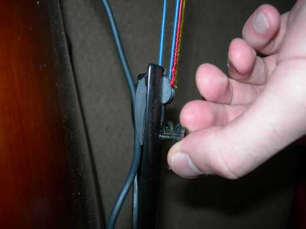 Girando las clavijas para aumentar o disminuir tensión macro-ajusta el tono. Convirtiendo afinadores finos micro-ajusta el tono. Algunos instrumentos tienen sólo clavijas y afinadores finos no. Esto es más común con violines que con violonchelos.