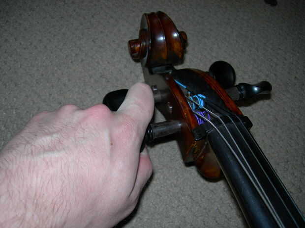 Continúan girando la clavija para cuerdas superiores y hacia la izquierda para cuerdas inferiores. La bobina de la cuerda tan ajustadamente como sea posible. Probablemente no le esto naturalmente después de algunas vueltas. Sin embargo, desea la cadena para poder alinear naturalmente con la tuerca, que tal vez necesite para bobina apretada al principio, después déjela bobina naturalmente después de eso.