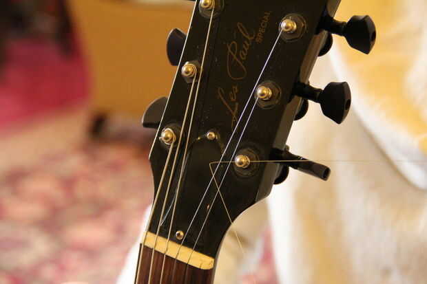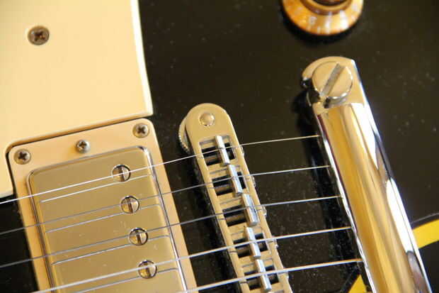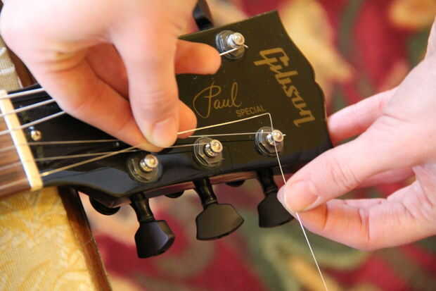 estas instrucciones son generales para reemplazar una cadena rota o desgastada con una guitarra. Estas instrucciones son las directrices generales y existen variaciones. Con la práctica, preferencias personales se desarrollar y ayudar a hacer el proceso más rápido y único a su instrumento. Las principales variaciones en todas las guitarras se ven en la forma de que la tremlo está configurado, principalmente en la cejuela y el puente. La guitarra en la foto es una Gibson Les Paul.