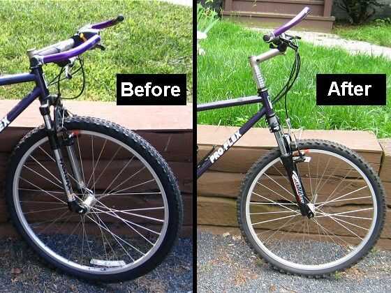 ¿tienes una bicicleta de montaña suspensión total mayores cuya horquilla de suspensión delantera está un poco cansado? Piezas de recambio para él pueden ser inexistente y costos para hacer el trabajo pueden ser mayor que el costo de una bicicleta nueva, pero no hay necesidad de desorden hasta un vertedero con una bicicleta perfectamente buena para un mejor paseo. Vuelva a colocar la horquilla delantera toda por algo más moderno y todavía no rompa el Banco! Además - esto es ghetto y hacer con lo que tenemos. Esto es una buena cosa a hacer para una moto de Freecycle, también.
