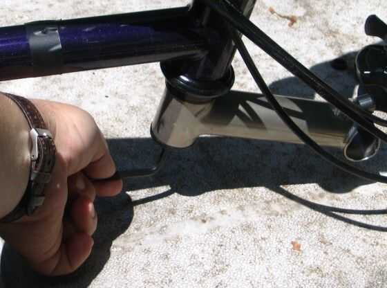 Retire el dustcap superior y su cuña de split que lo asegura. Esta parte fue complicada, ya que literalmente fue encajado en su lugar, así que tuve que golpear el tubo de dirección unas cuantas veces con un trozo de 2 x 4 para aflojarlo.