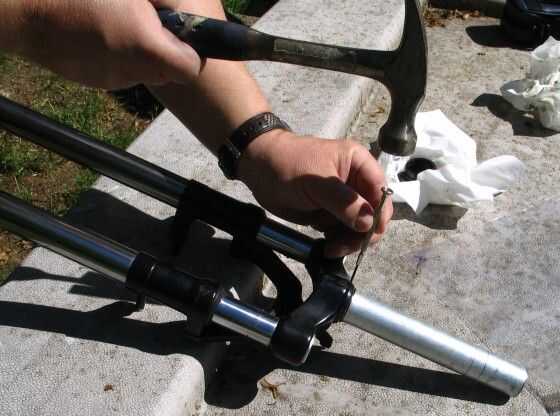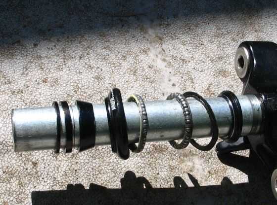Retire la horquilla. Tenga cuidado de cualquier rodamientos o dustcaps que puede salir con él y guardarlas en orden. Note una vez más, si los rodamientos inferiores están en un retén, que lado va donde.