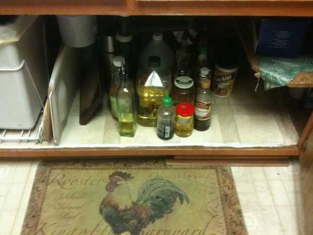 Una vez seca la masilla, puede mover hacia atrás. A la izquierda es un bote de basura deslizante. A la derecha puedes ver la viga madera fina poco que utiliza como un dique si allí pasa a ser otra fuga de agua.